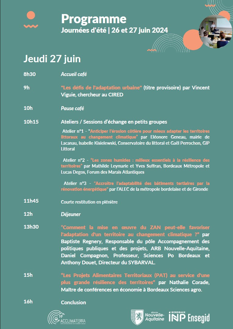 La 3e édition des Journées d’été d’Acclimaterra se déroulera les 26 et 27 juin 2024 à l’ENSEIRB-MATMECA (1 Avenue du Dr Albert Schweitzer, 33400 Talence)