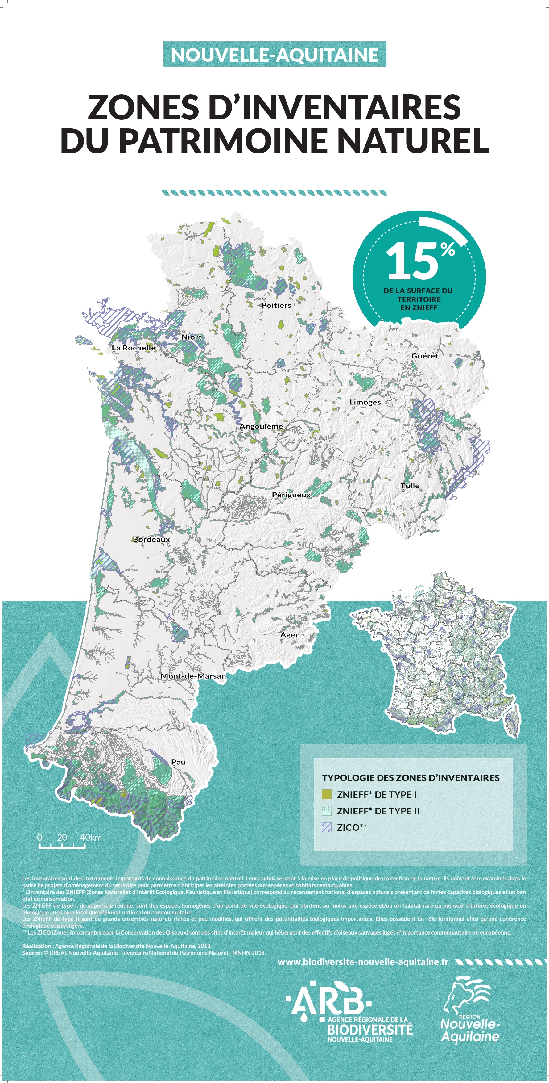 Nouvelle-Aquitaine : Une mosaïque de territoires - MILIEUX FORESTIERS  Nouvelle-Aquitaine : Une mosaïque de territoires - MILIEUX HUMIDES  Nouvelle-Aquitaine : Une mosaïque de territoires - MILIEUX AGRICOLESNouvelle-Aquitaine : Une mosaïque de territoires - SURFACES TOUJOURS EN HERBENouvelle-Aquitaine : Une mosaïque de territoires - ZONES D’INVENTAIRES DU PATRIMOINE NATUREL