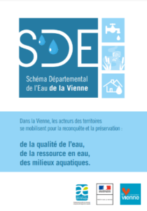 Le Schéma Départemental de l’Eau (SDE) 2018-2027 de la Vienne est une feuille de route commune, partagée entre les acteurs de l’eau du territoire et portée par l’Etat et le Département. Elle place l’eau comme un enjeu environnemental majeur et fixe les principes directeurs et les objectifs d’intérêt général suivants :