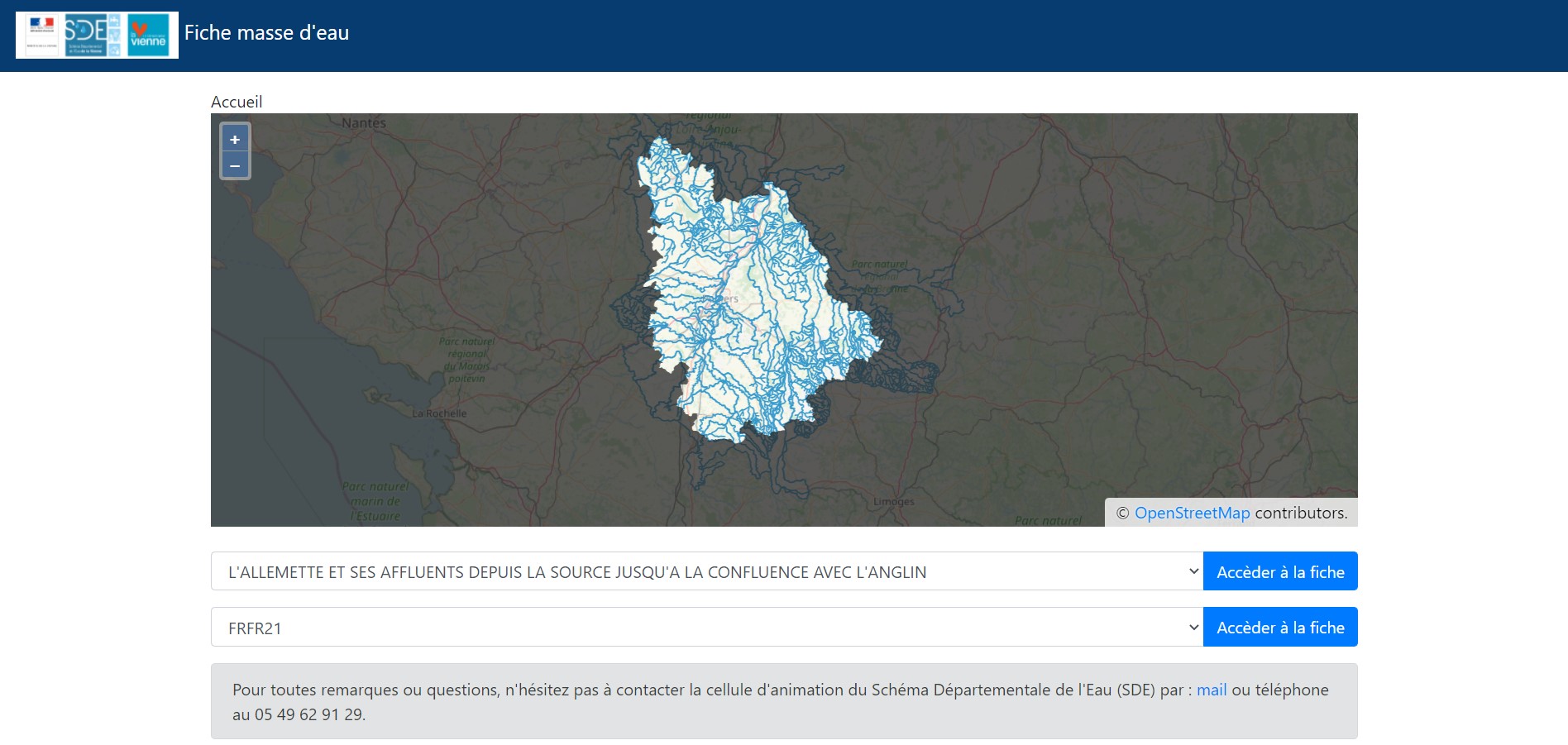 Pour en savoir plus sur le SDE et l’observatoire, contactez la cellule d’animation du Schéma Départementale de l’Eau (SDE) par mail () ou téléphone (05 49 62 91 29).