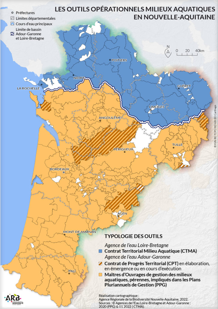 Plus de 95% du territoire néo-aquitain couvert par un outil opérationnel milieux aquatiques.