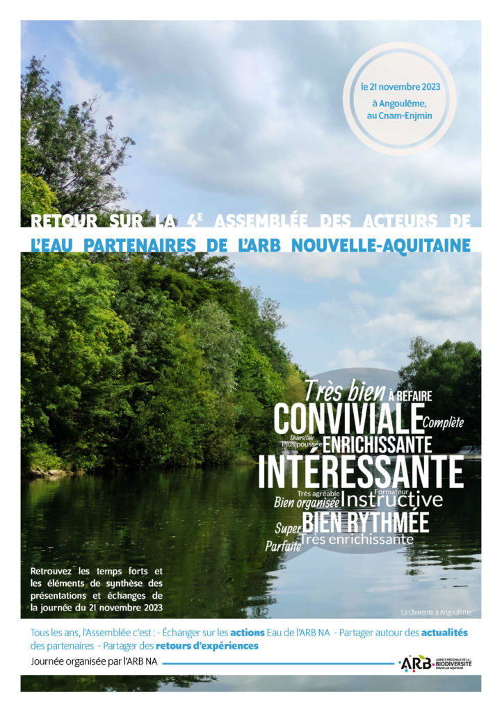 L’ARB NA remercie encore tous les participants pour leur présence, leur implication et leur soutien dans tous ces échanges sur ce partage collectif d’informations sur les problématiques de gestion des eaux et de protection de la biodiversité en région !