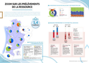 Le souhait initial était de produire un document simple et visuel mettant l’information en avant par l’intermédiaire de chiffres clés, cartes, histogrammes … Il permettrait par la même occasion d’actualiser un certain nombre de chiffres clés sur lesquels s’était appuyée la Stratégie Régionale sur l’Eau élaborée en 2018, par la Région Nouvelle-Aquitaine. Il intégrerait à la fois les enjeux économiques mais aussi ceux des milieux aquatiques.