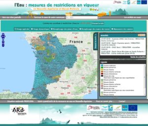 Sortie du site « Info Restrictions Eau » à l’échelle Nouvelle-Aquitaine