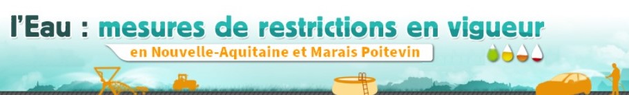 Le site Info Restrictions Eau vous permet de suivre, à l’échelle de la région Nouvelle-Aquitaine, les mesures de restriction des différents usages de l’eau en vigueur sur votre commune. Tenant compte des spécificités locales, il informe sur les restrictions en cours et répond au besoin de compréhension des mesures prises : concernent-elles les rivières ? Les nappes profondes ou superficielles ? Tous les usages ? Quelles cultures ? Peut-on arroser son potager ? Remplir sa piscine ? Quels sont les niveaux d’eau sur sa commune ? Comment sont décidées les restrictions ? Etc.
