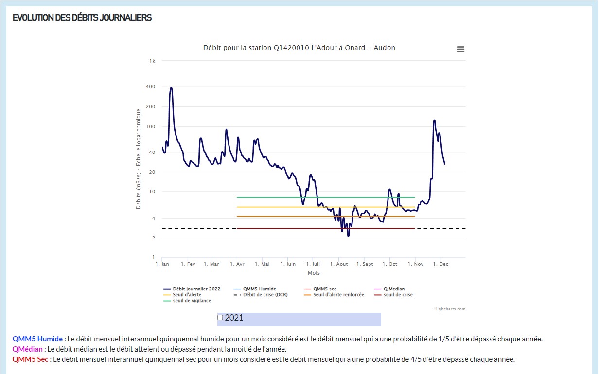 Le graphique d’évolution des débits journaliers a, quant à lui, peu évolué. Rappelons néanmoins quelques-unes de ses fonctionnalités :