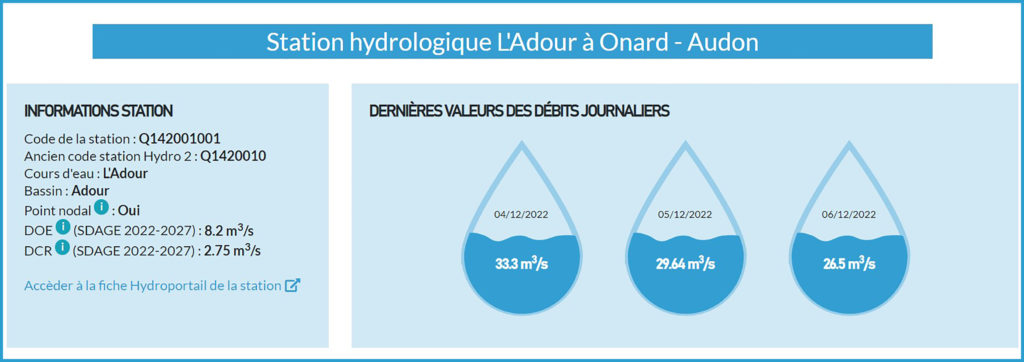 À noter qu’il est enfin possible d’ajouter des fiches débits en favoris puisque l’URL intègre le code de la station (nouveau code).